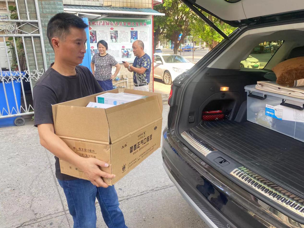 鴻達(dá)設(shè)計(jì)公司特購(gòu)買礦泉水、藿香正氣液和口罩贈(zèng)送給雙橋收費(fèi)站、雙才收費(fèi)站、椑木收費(fèi)站、郭北收費(fèi)站、田家收費(fèi)站、小河口收費(fèi)站、石子國(guó)省干道等7個(gè)卡點(diǎn)的工作人員。