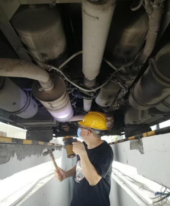 一把榔頭只為堅守源頭安全。在車站車輛例檢處,例檢員劉海正在烈日下作業(yè),滾燙的水泥地面、發(fā)熱的客車底盤和客車尾氣讓車輛例檢臺溫度更高。劉海不停地在車輛底部鉆進鉆出,從燈光、轉(zhuǎn)向、制動、底盤,到車胎、螺絲、安全帶、消防錘等,認(rèn)真檢查著每一個車輛部件。客車底部的高溫讓他下去一次便全身濕透一次,臉上的汗也順著頭發(fā)往下滴落。說起自己的工作,劉海認(rèn)為雖然工作環(huán)境惡劣一些,但是與售票員、檢票員并沒有什么不一樣,只是分工不同,做好車輛例檢工作,保障客車運行安全,是們的責(zé)任目的都是為旅客出行服務(wù)。